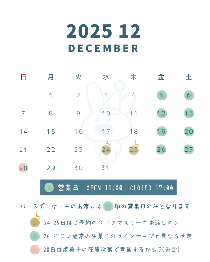 焼菓子や生菓子、バースデーケーキのご予約も承ります。生菓子は日替わりで「シュークリーム・タルト・ショートケーキなど」ご用意しております。
